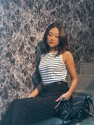 Ladies Tank Top – Stylish Sleeveless Casual Wear || Black & White Stripe