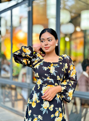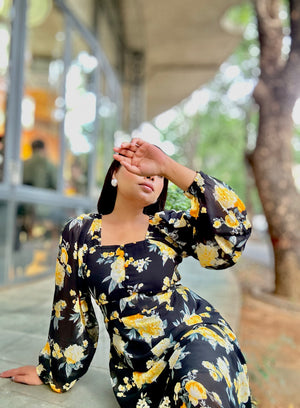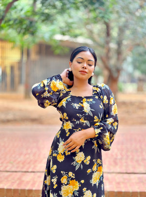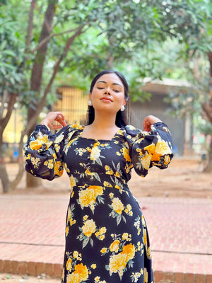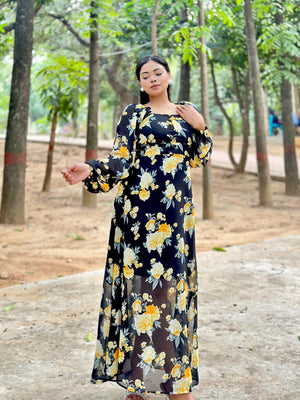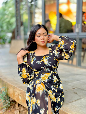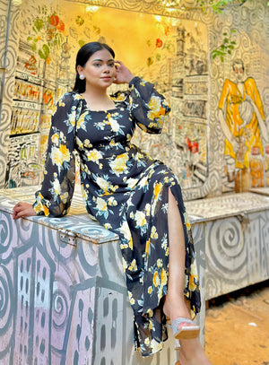 Ocean Slit Cut Gown || Long Beach Gown || Tour Gown || Black + Yellow
