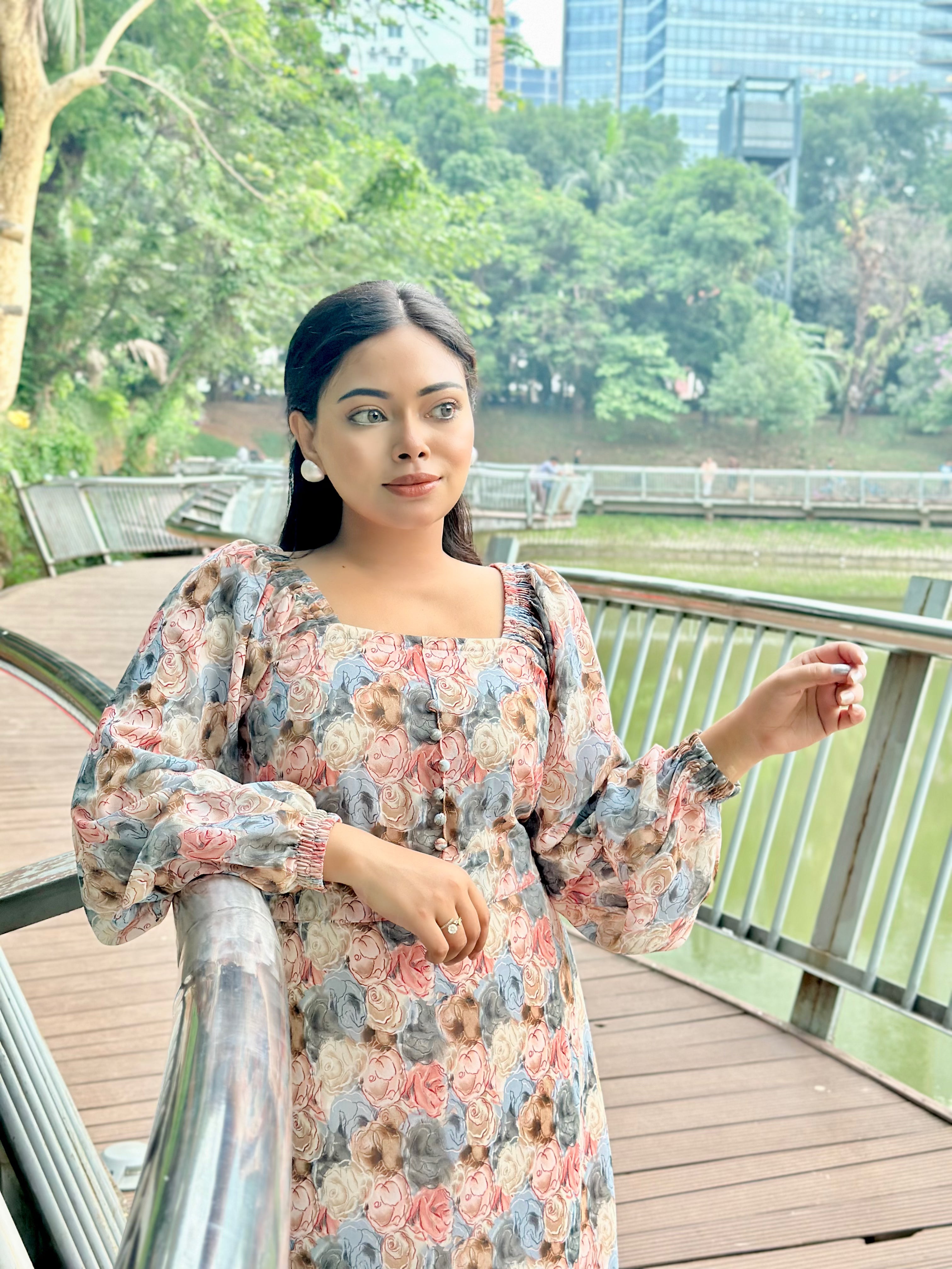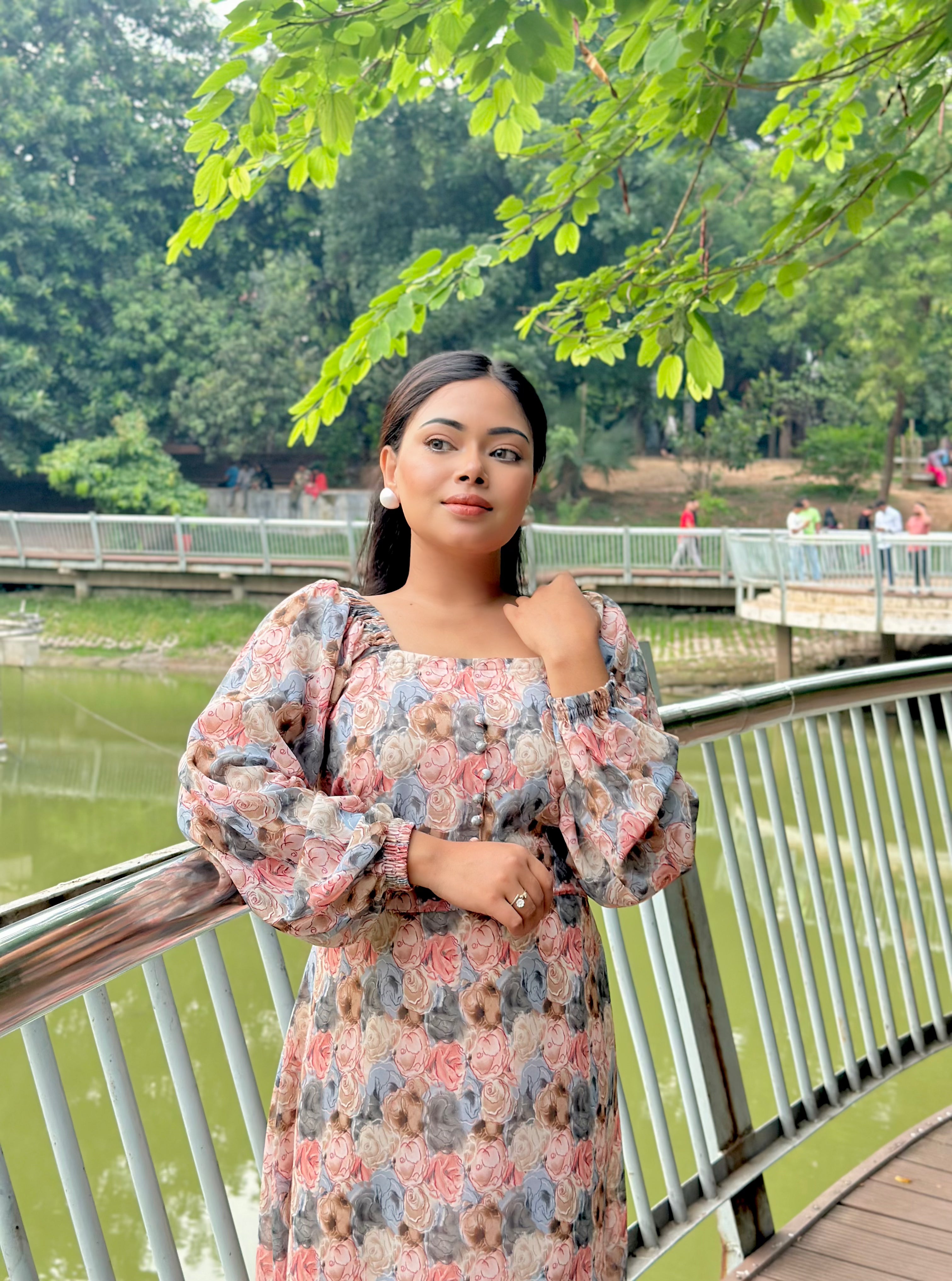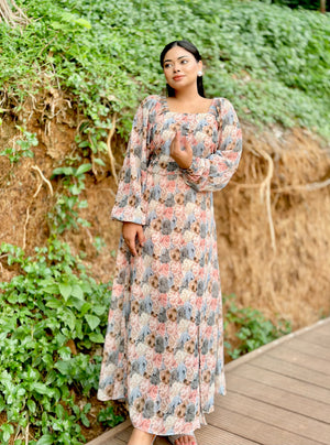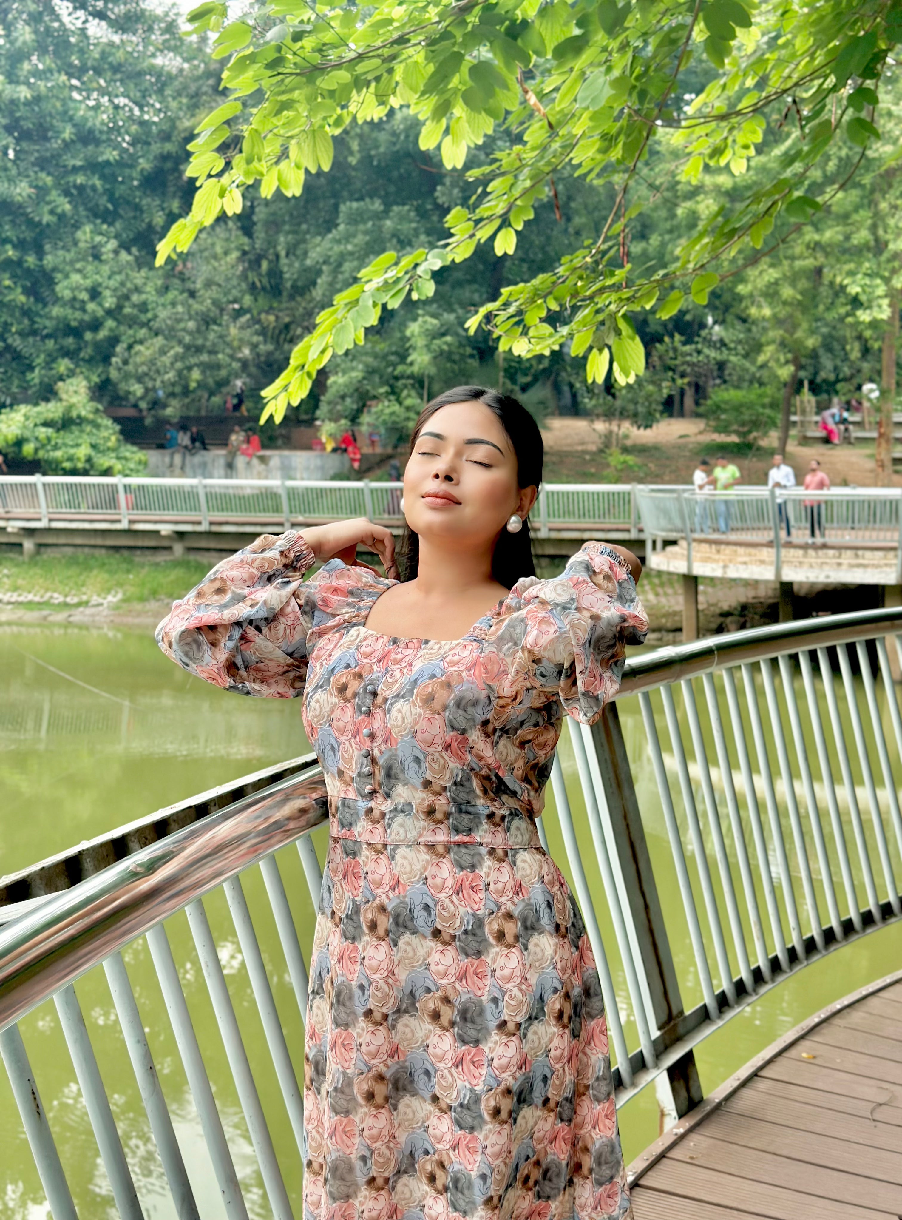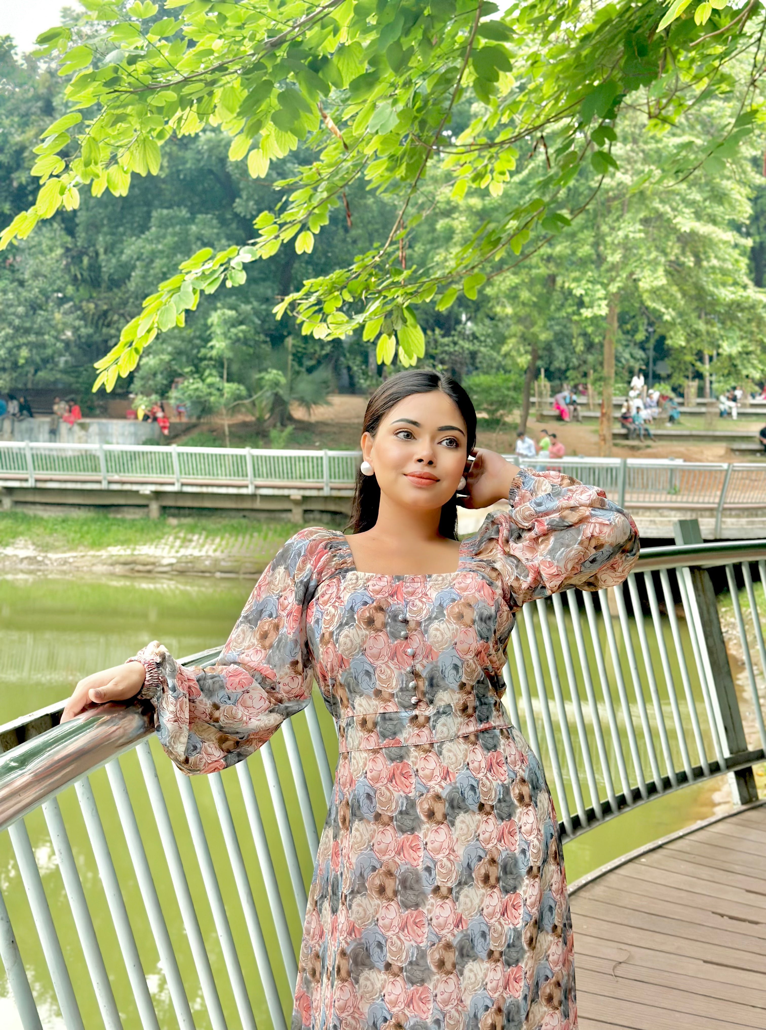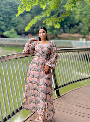 Ocean Slit Cut Gown || Long Beach Gown || Tour Gown || Multicolor Rose