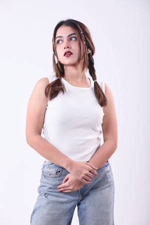 Ladies Sleeveless Crop Top – Basic Tank Top for Everyday Wear || White