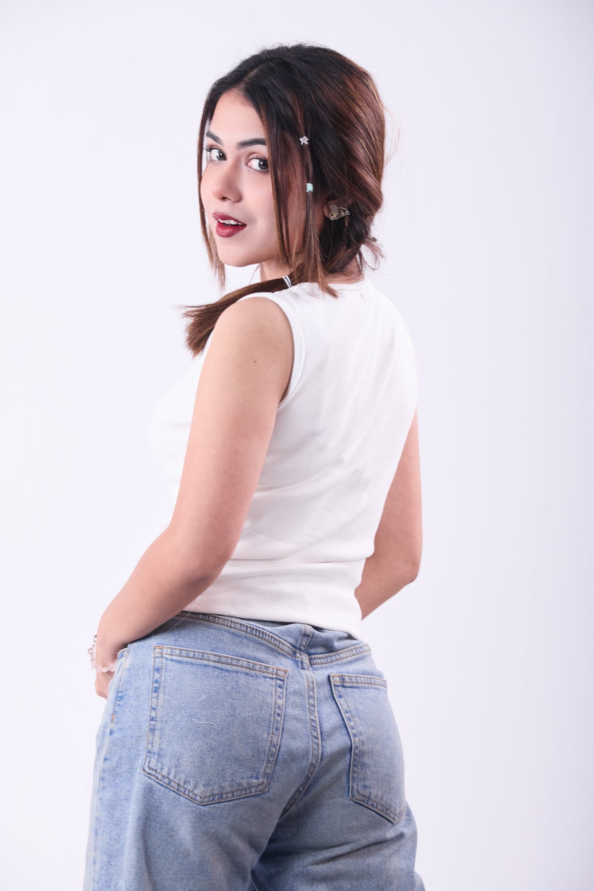Keep it simple, stylish, and comfortable with our Ladies Sleeveless White Crop Top, a must-have basic for every wardrobe. Designed with a clean sleeveless cut and a flattering crop length, this top is perfect for summer wear, layering, and everyday casual styling.