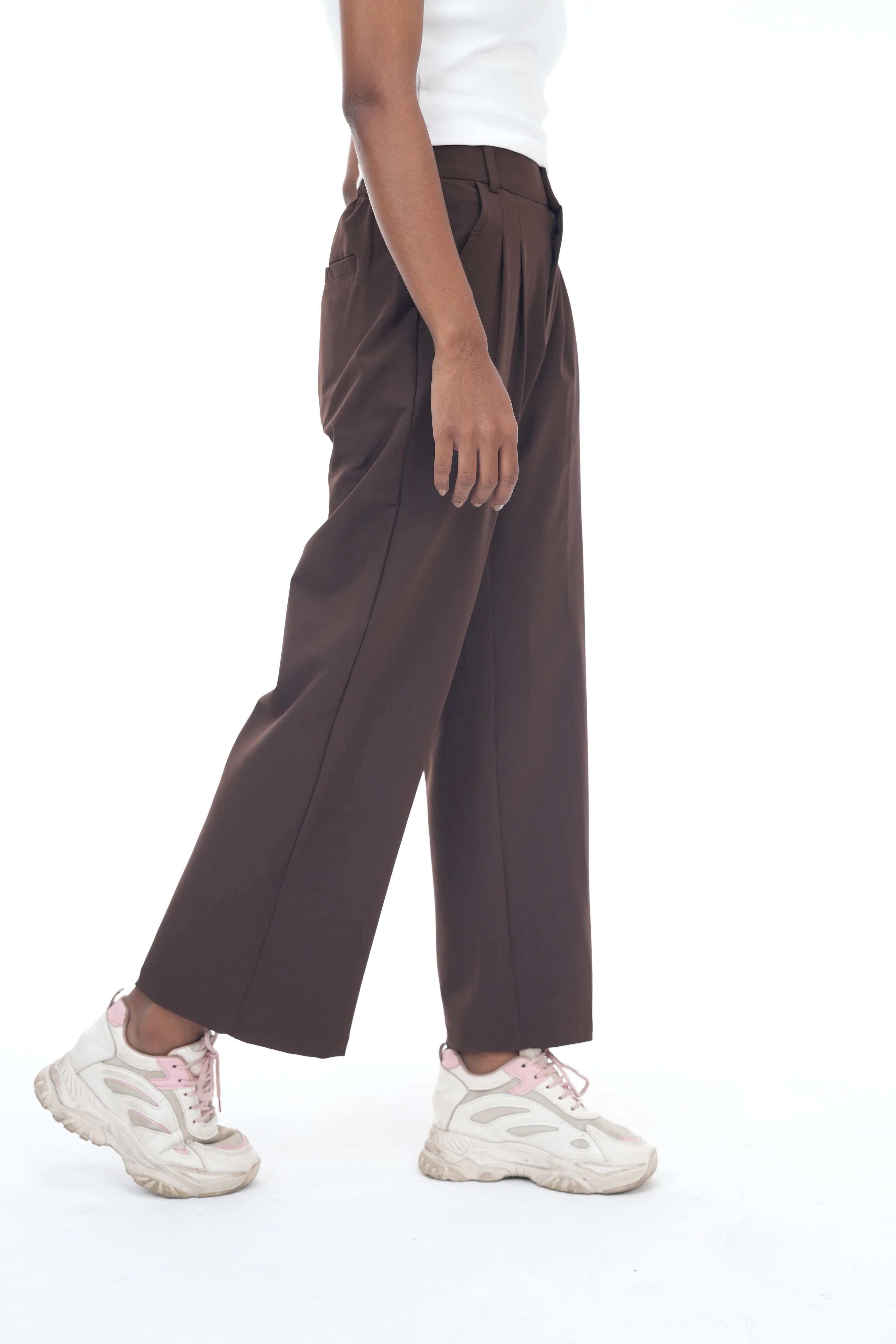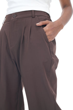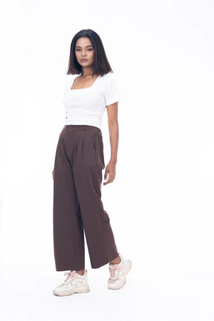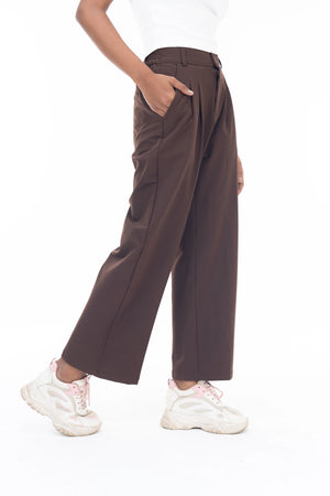 Ladies Wide Leg Formal Pant || High Waist Office Wear || Coffee