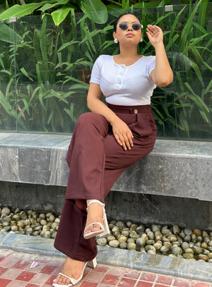 Ladies Wide Leg Pant 2 Button || Ladies Wide Leg Trousers || Wine