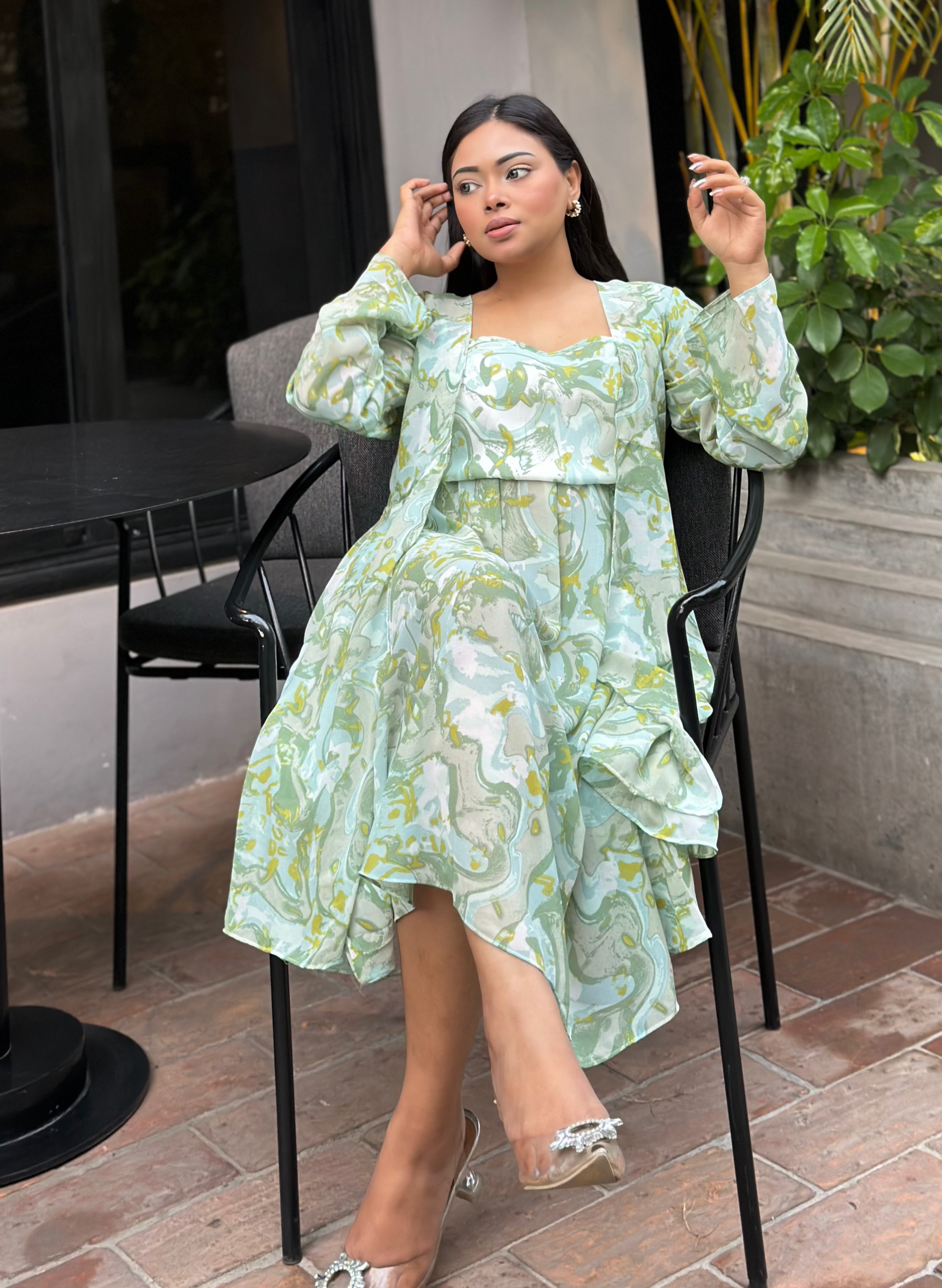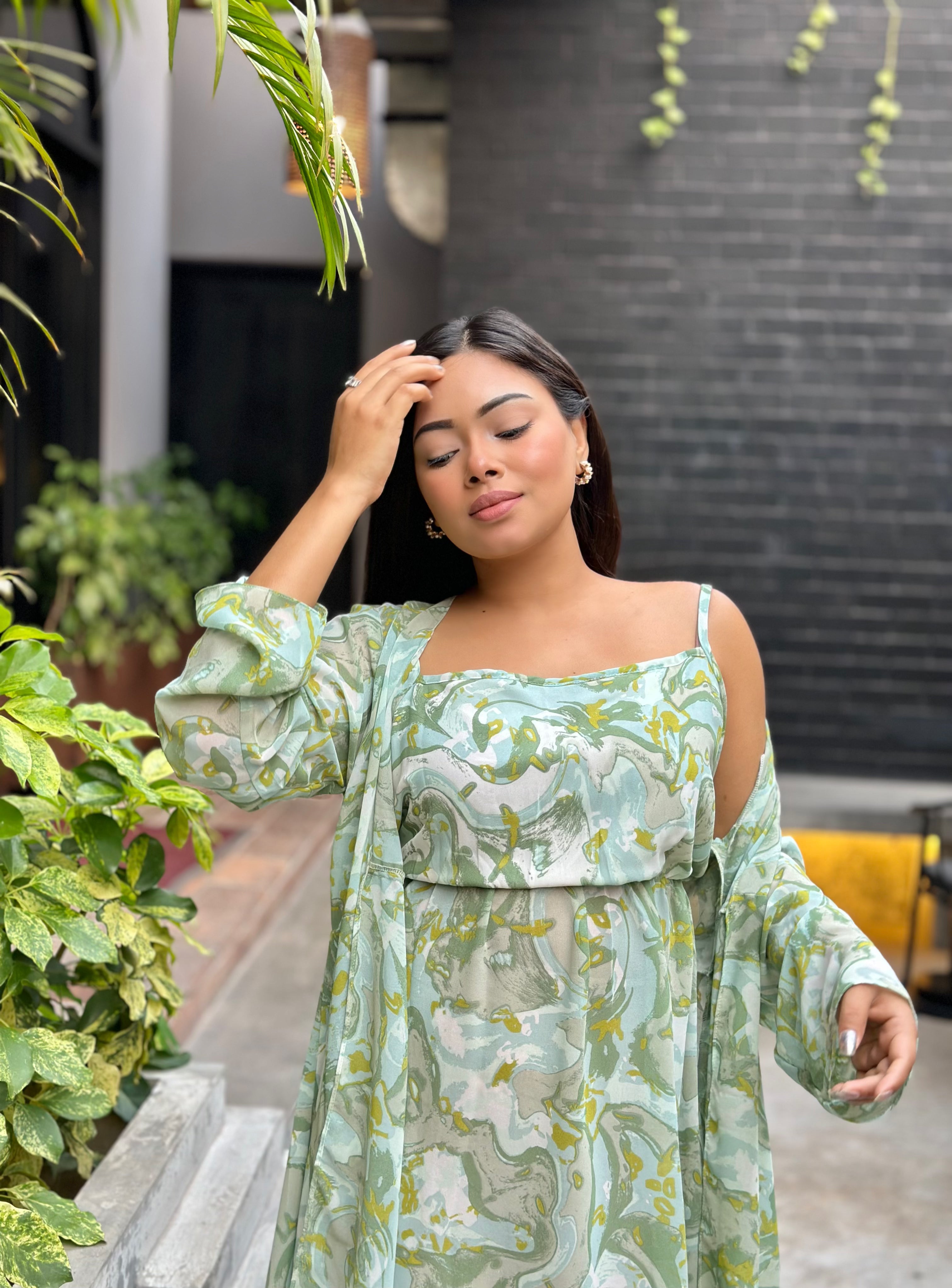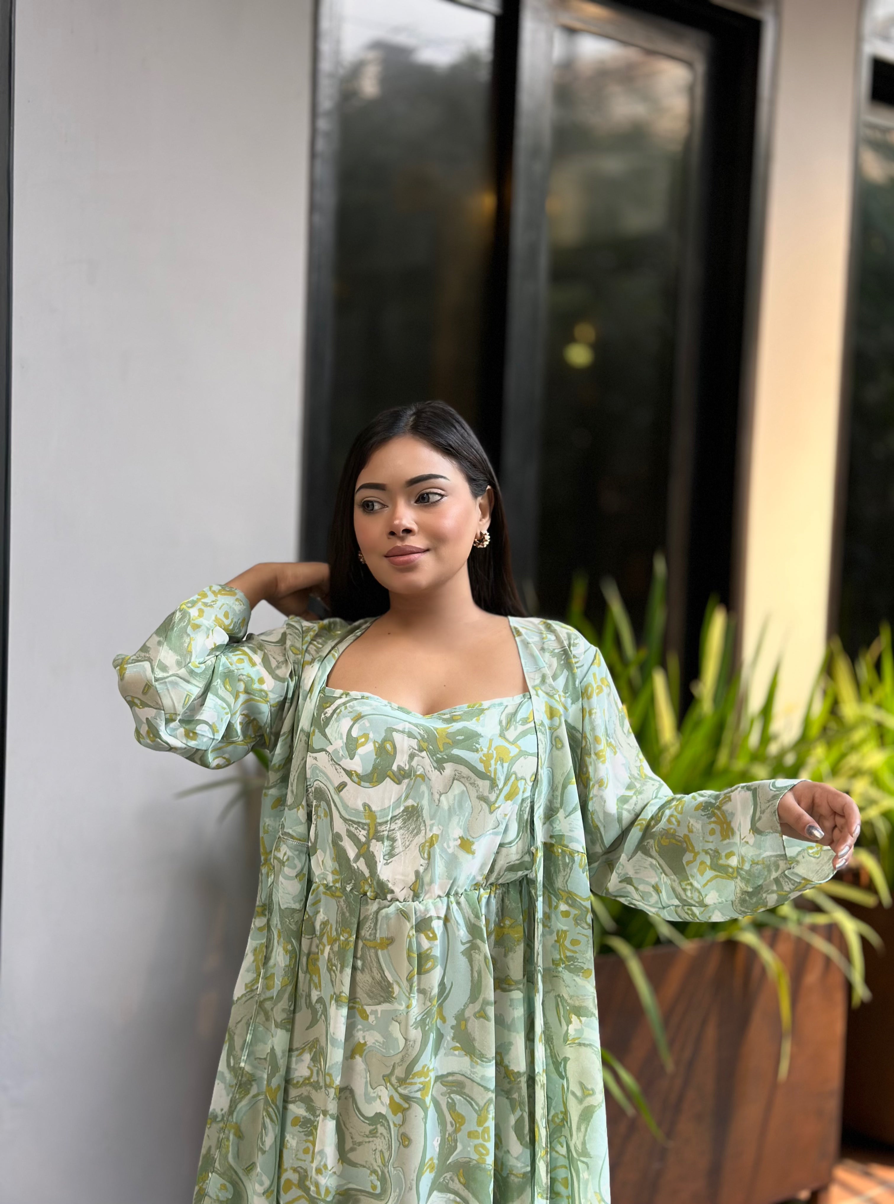 Midi Gown with Shrug Set || Koti Gown Set || Long Shrug With Midi || Mint