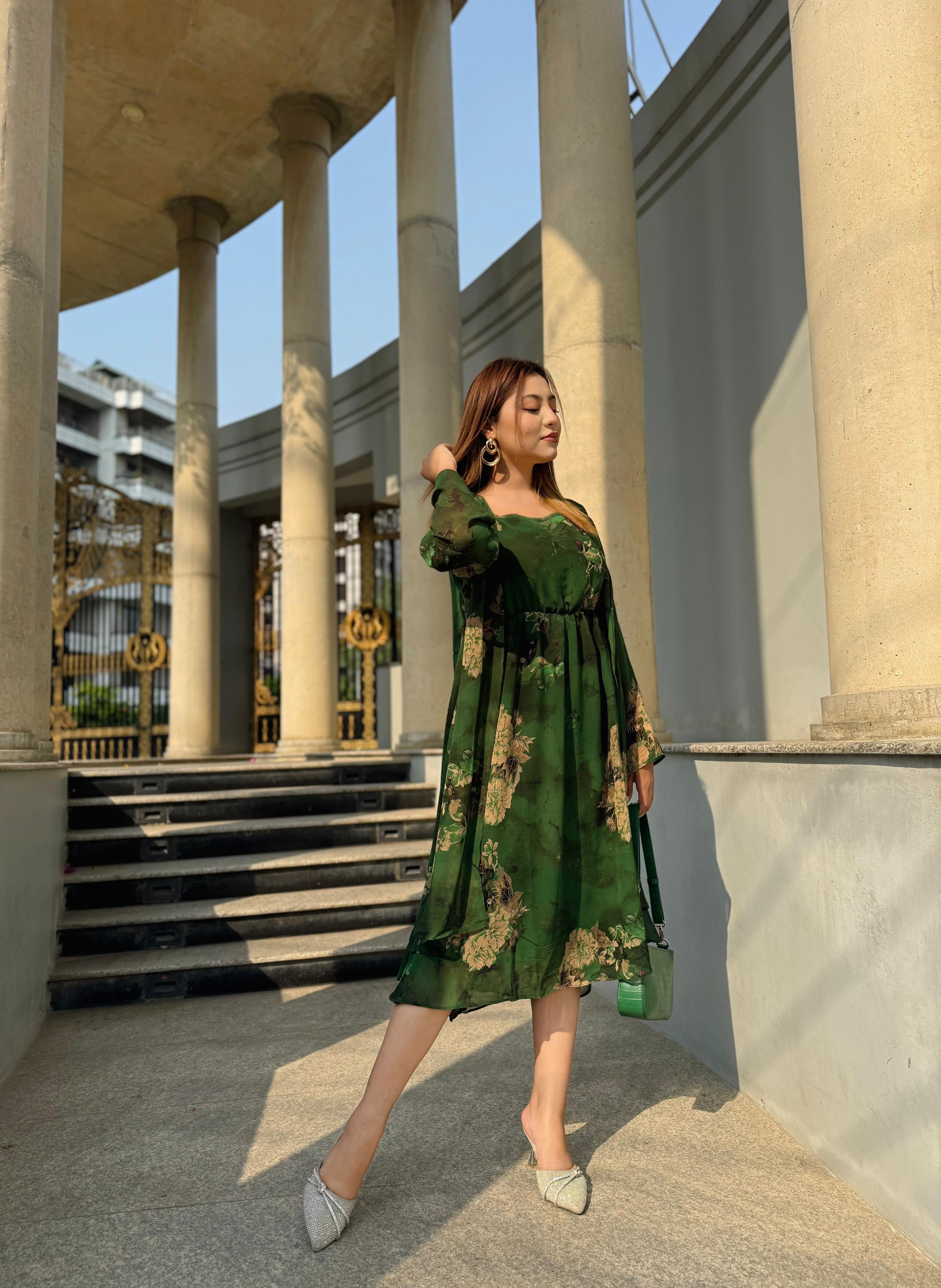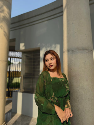 Midi Gown with Shrug Set || Koti Gown Set || Long Shrug With Midi || Green