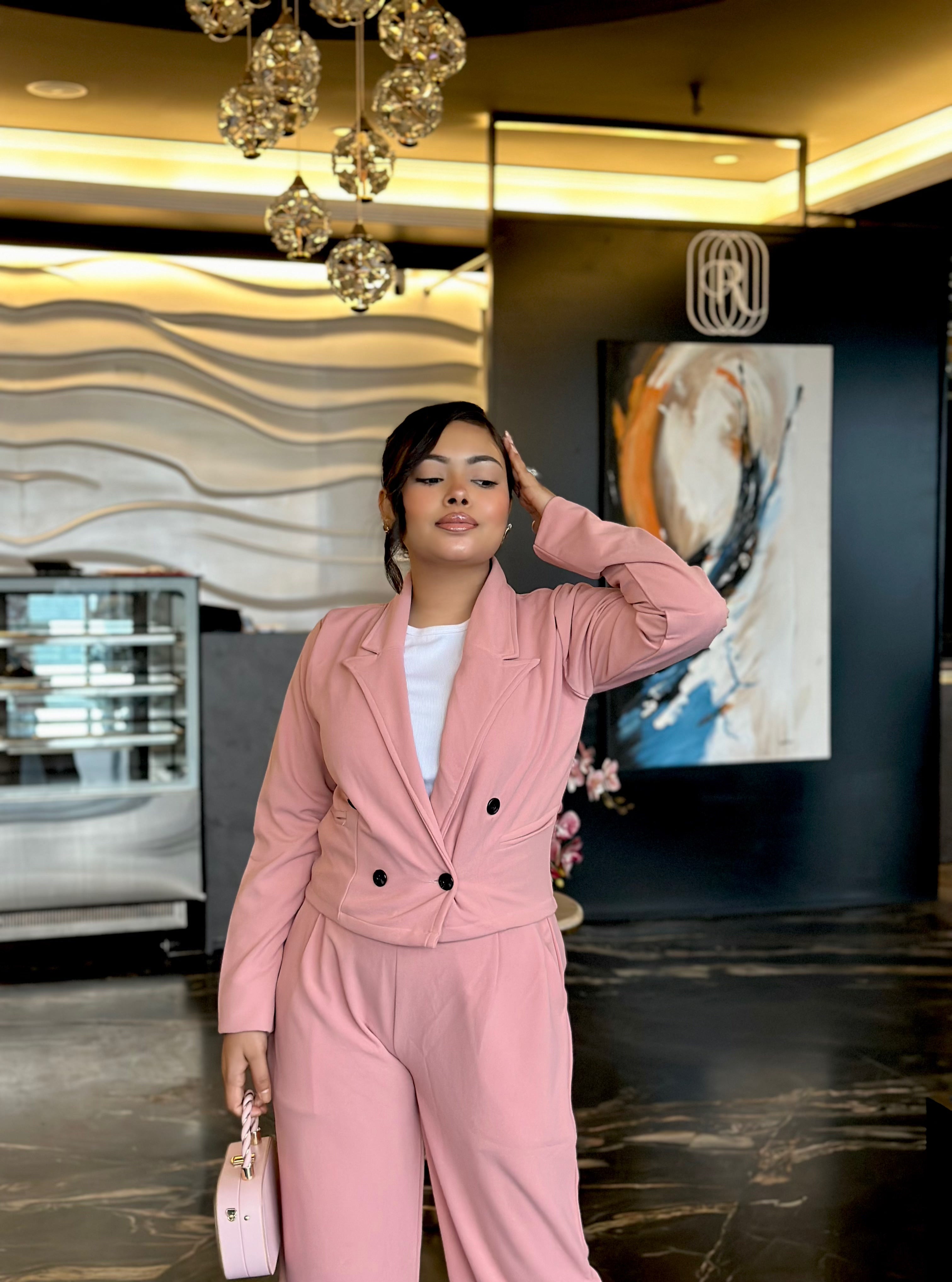 Ladies Crop Pink Pookie Blazer Set || Fashionable Blazer Suit || Women Blazer