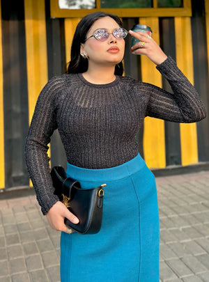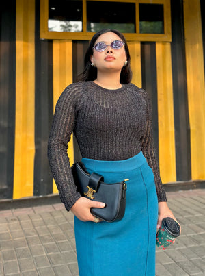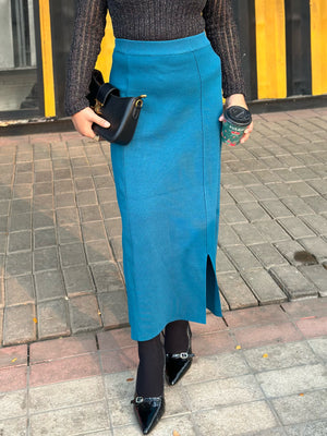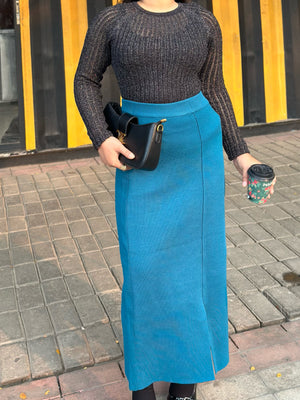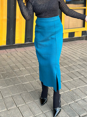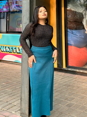 Bring effortless elegance to your wardrobe with our Sea Blue High Waist Pencil Skirt, a timeless western wear essential from TrendyBuzz. Designed for women who love a classy, confident, and polished look, this skirt is made with premium wool blend fabric that feels soft, warm, and comfortable - perfect for both winter days and evening outings.