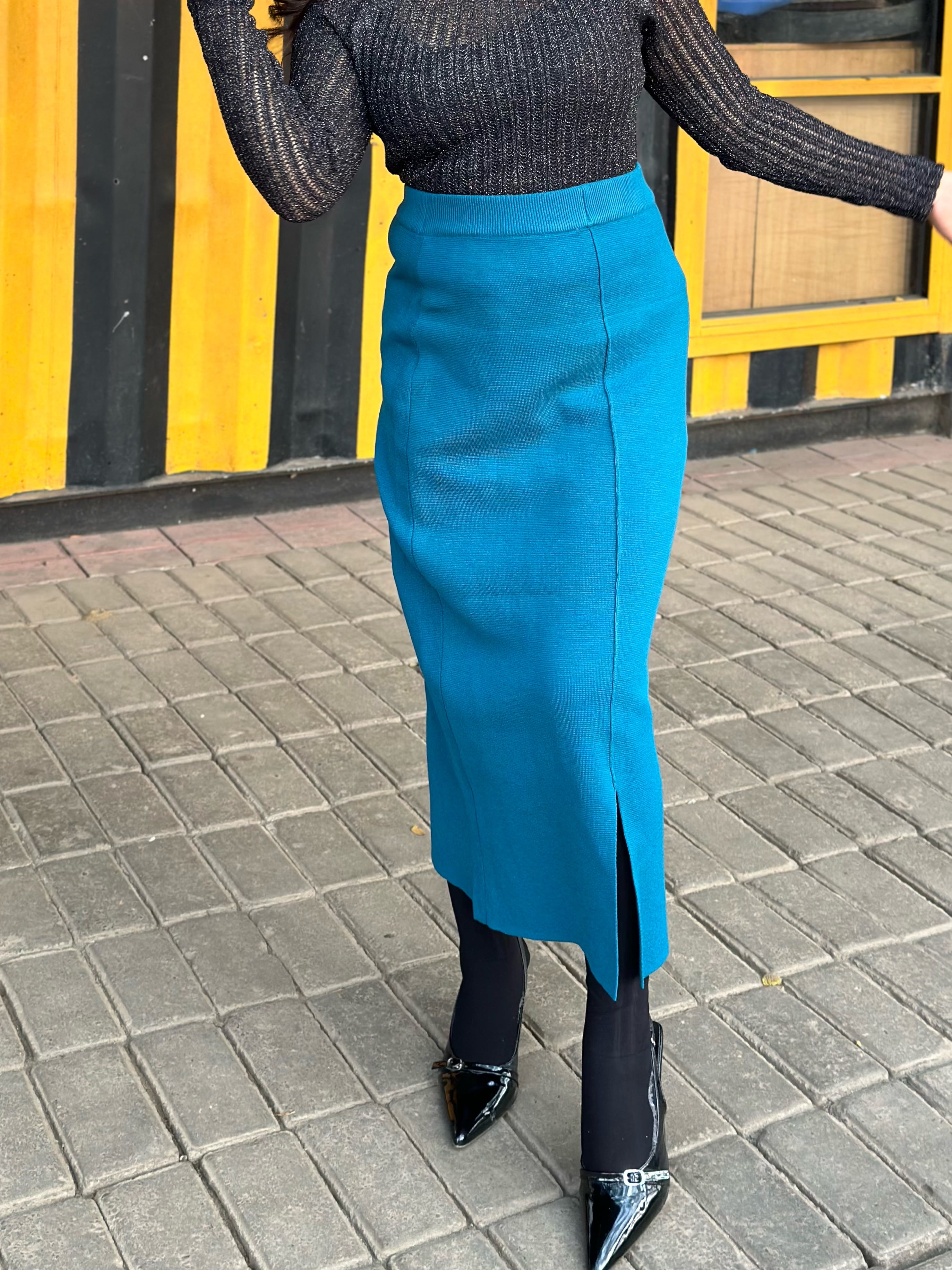 Ladies Sea Blue High Waist Pencil Skirt || Western Wear || Sea Blue Skirt