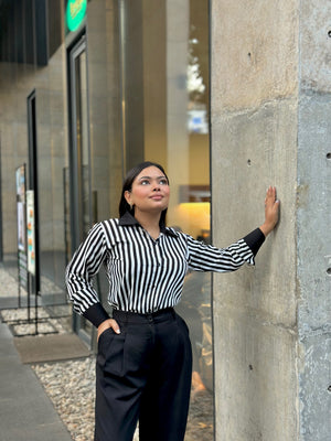 Premium Ladies Black & White Stripe Shirt – Elegant Formal & Casual Wear