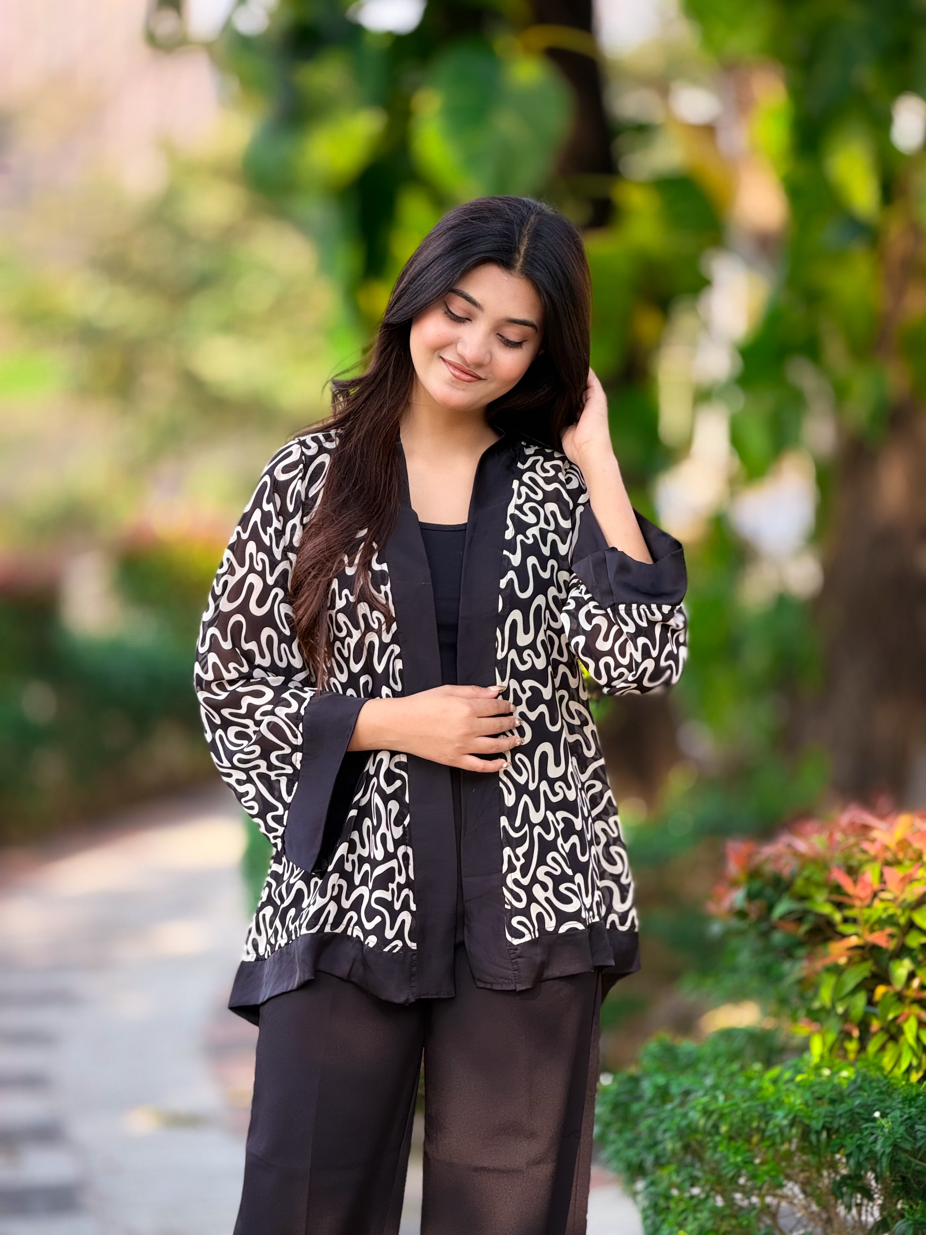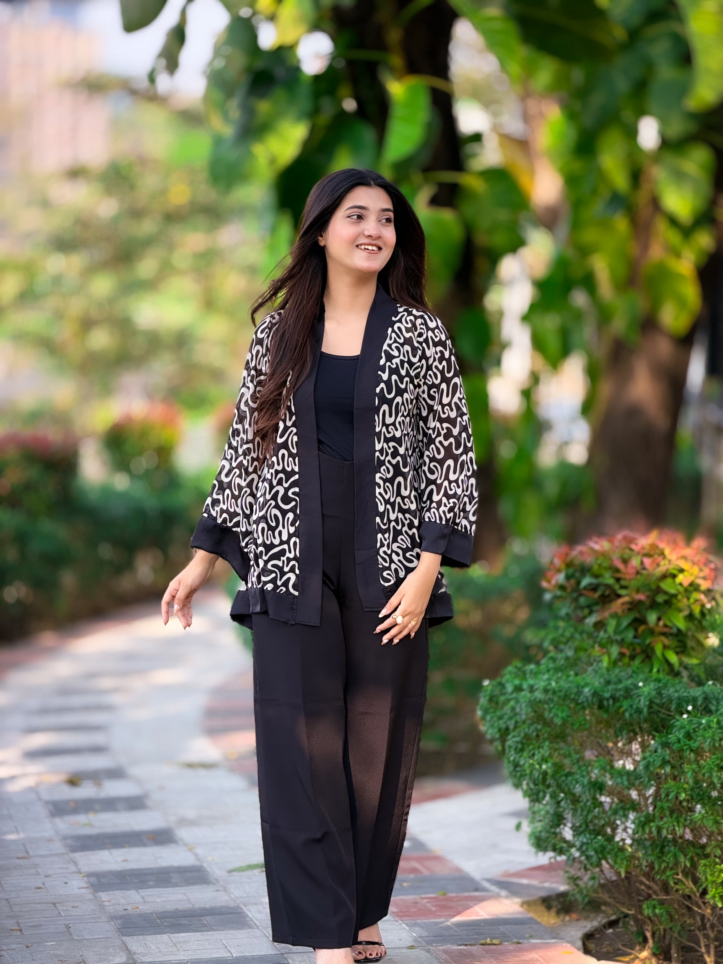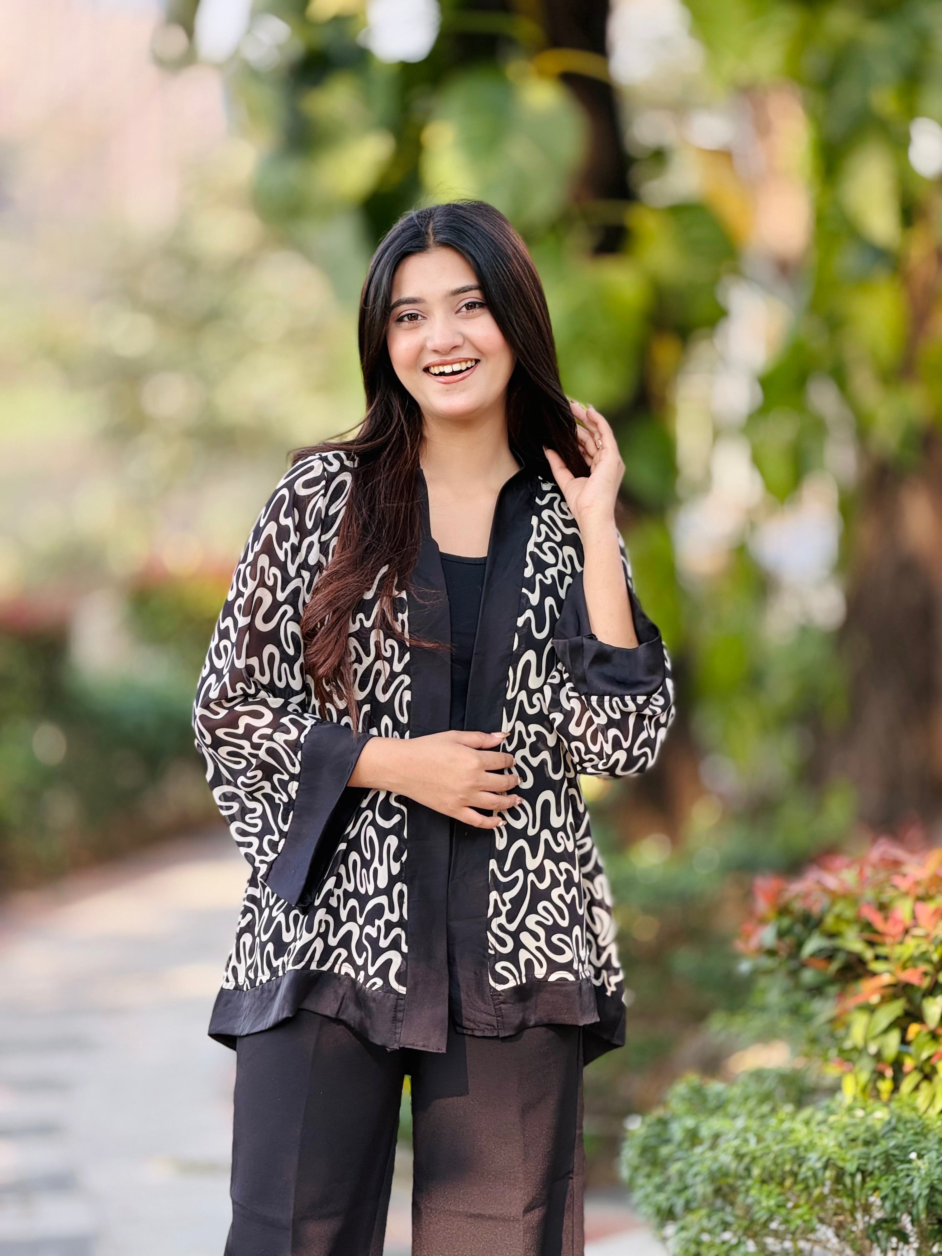 Add instant elegance to your outfit with this Ladies Black Beige Abstract Kimono from TrendyBuzz. Designed for modern women who love effortless fashion, this lightweight outer layer delivers both comfort and premium style.