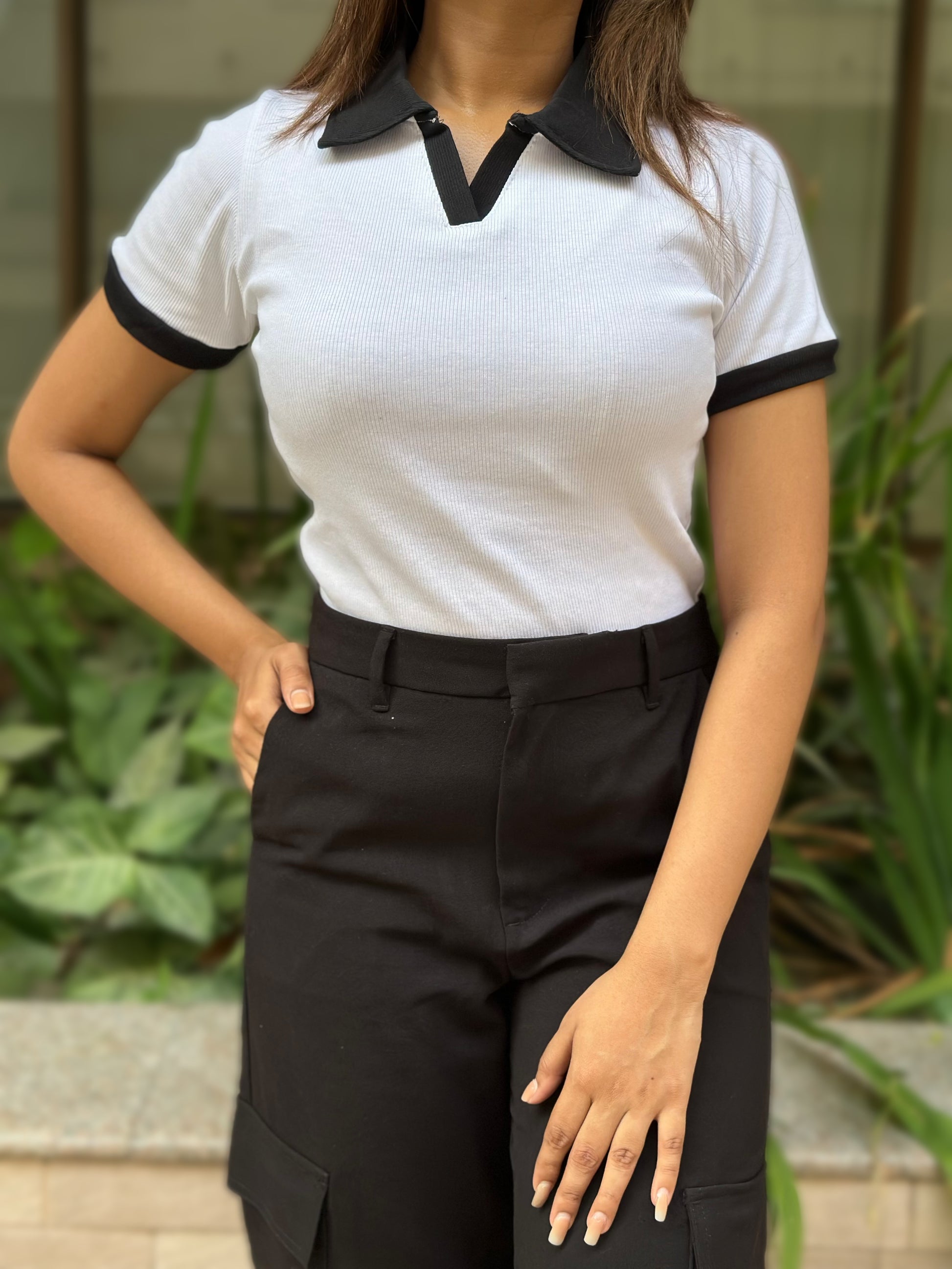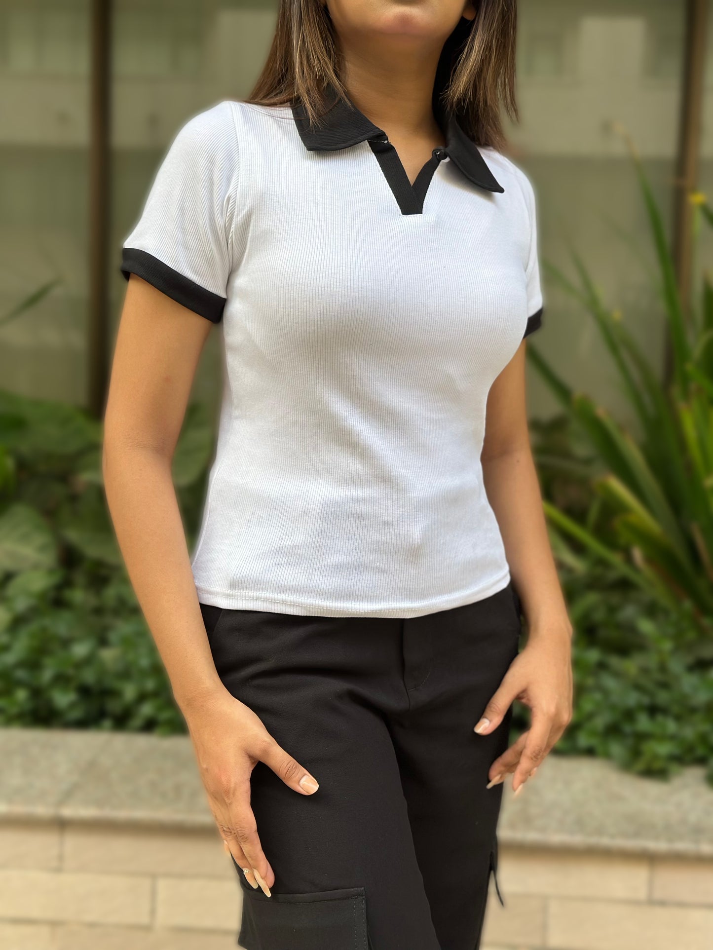 Contrast Polo T-Shirt || White
