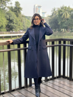 Keep yourself warm and classy this winter with our Winter Special Ladies Long Overcoat in stunning Blueish Black color 💙. Crafted from high-quality wool-blend fabric, this coat combines elegance with comfort. Its long, structured cut gives a smart and timeless winter look, perfect for office, business meetings, travel, or casual outings.