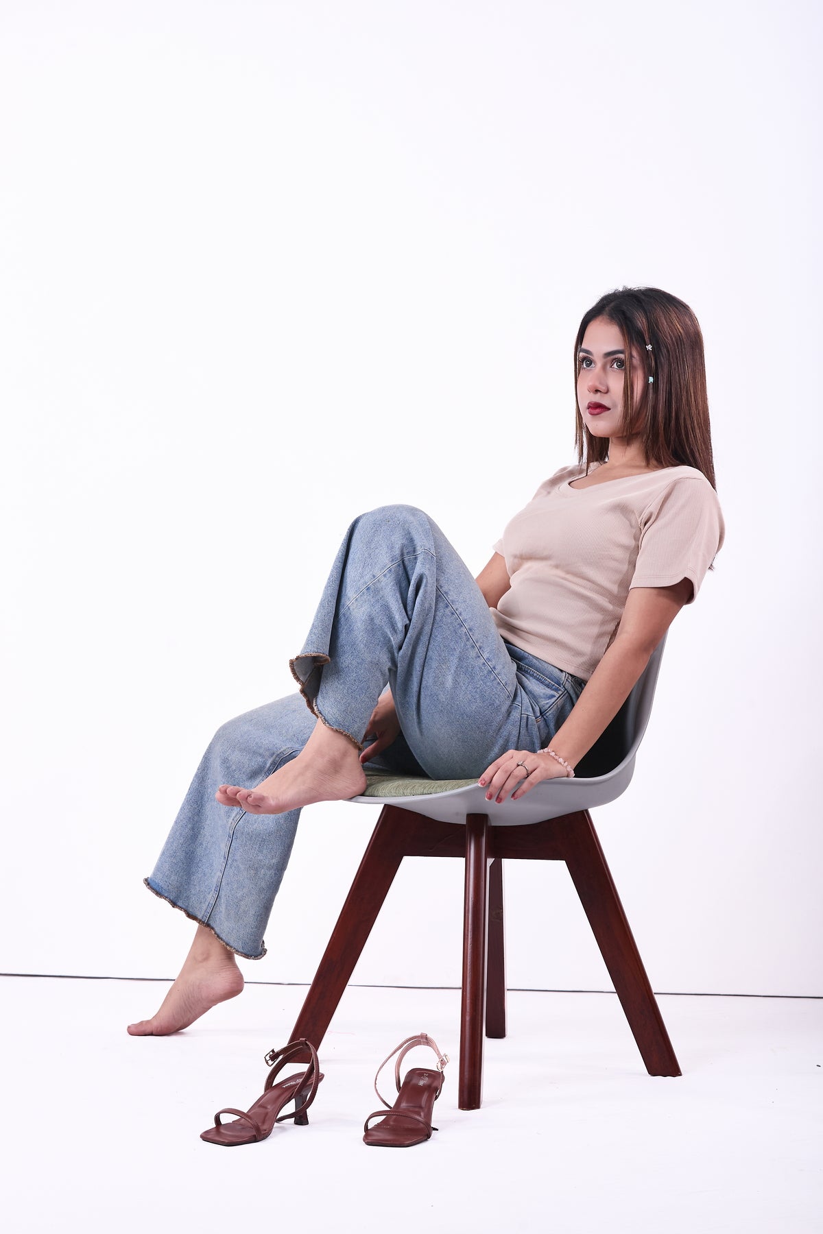 Refresh your everyday wardrobe with our Ladies Round Neck Warm-White Crop T-Shirt, a must-have basic for modern girls who love comfort and style. Made from soft stretchable ribbed fabric, this crop tee gives a flattering fit while keeping you comfortable all day.
