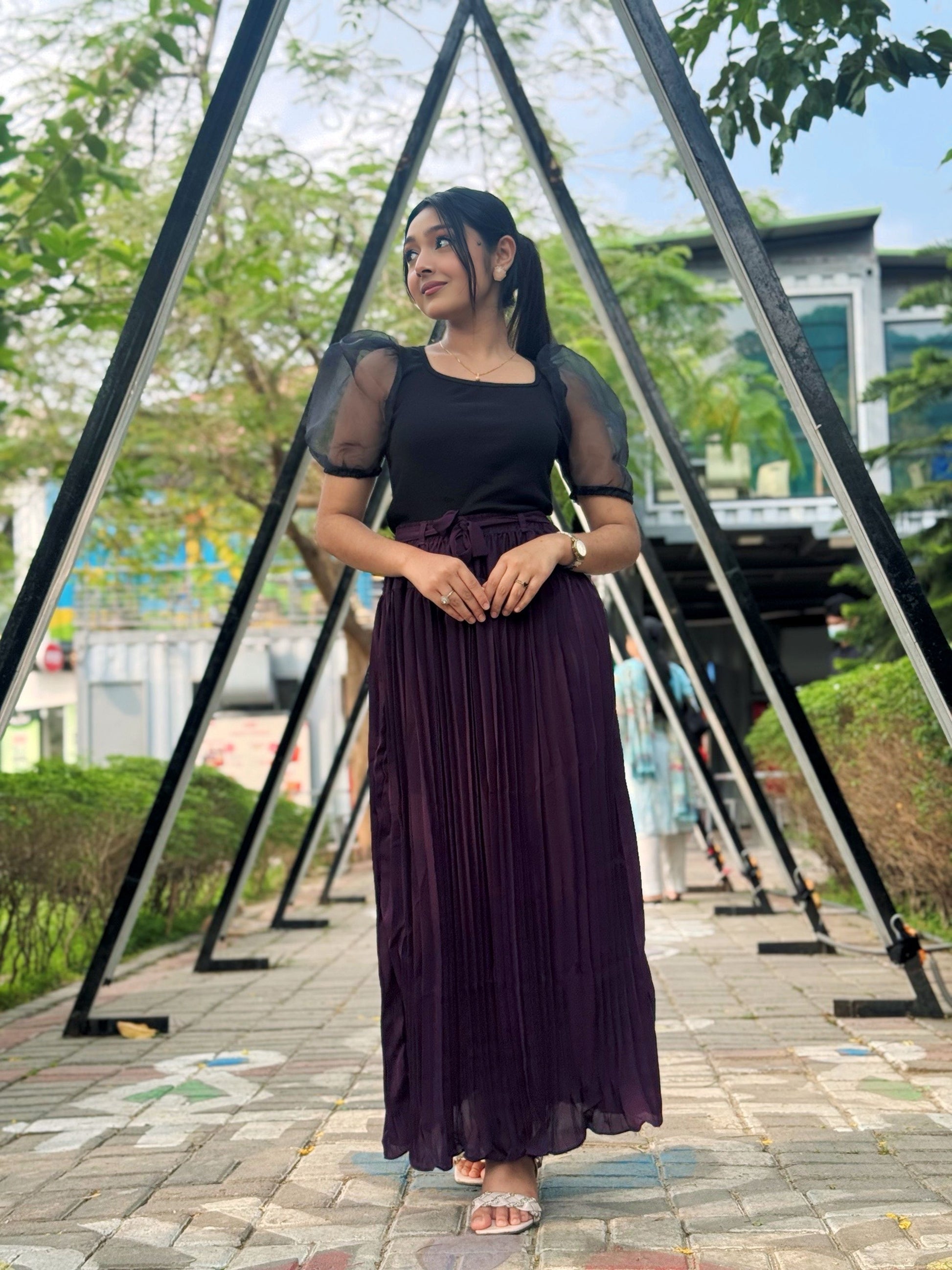 Mesh Puffy Sleeve Tops || Black