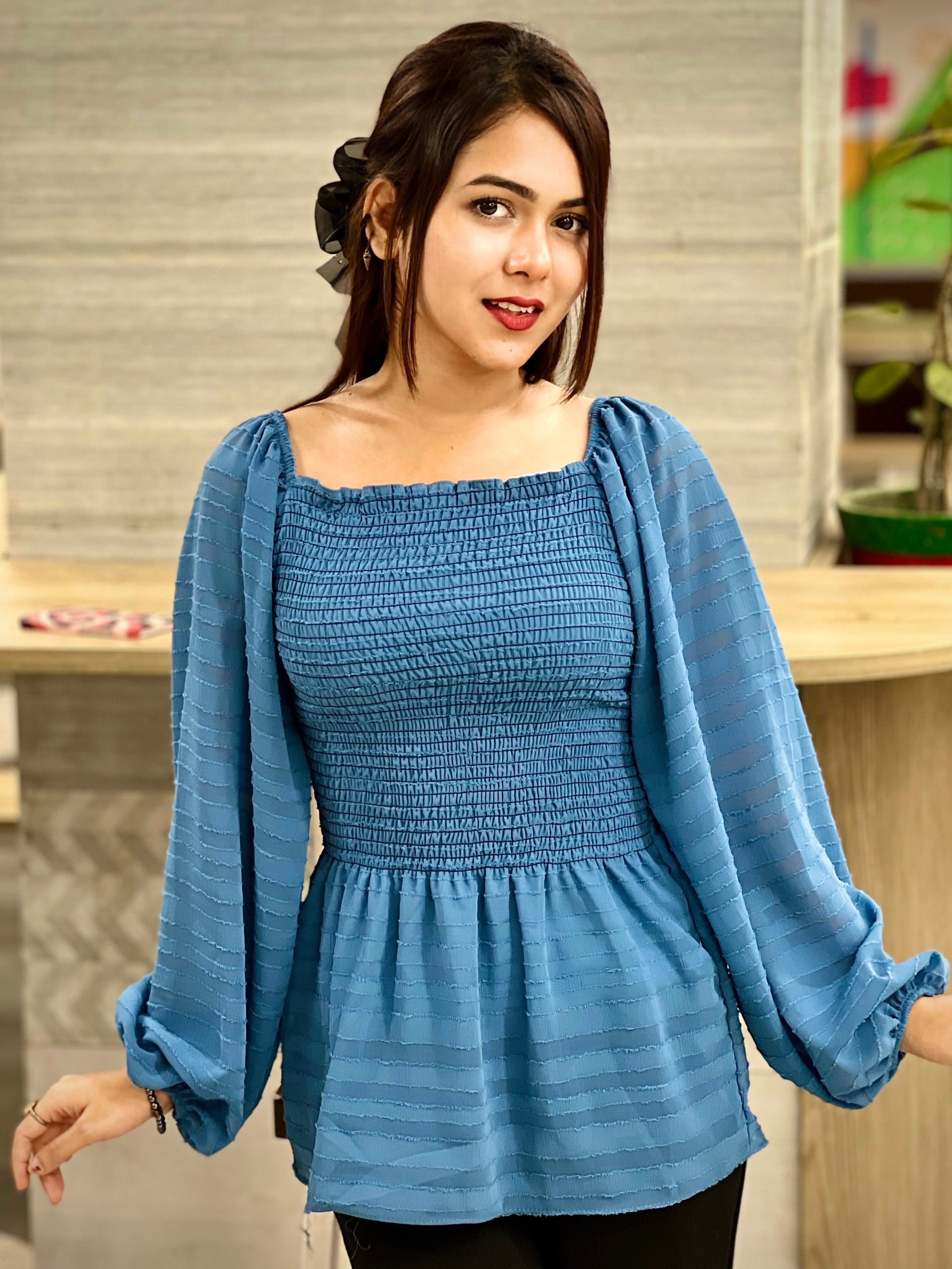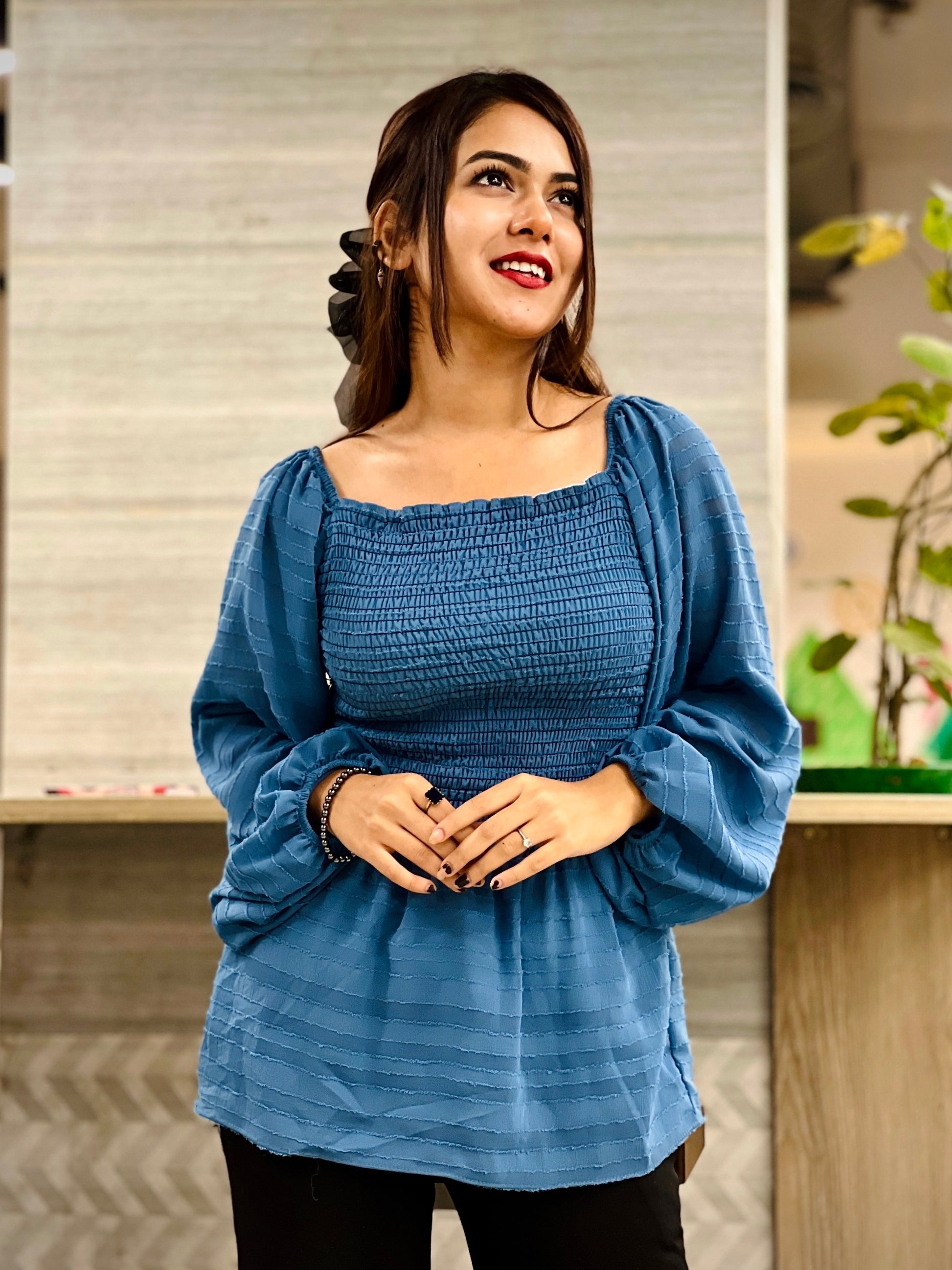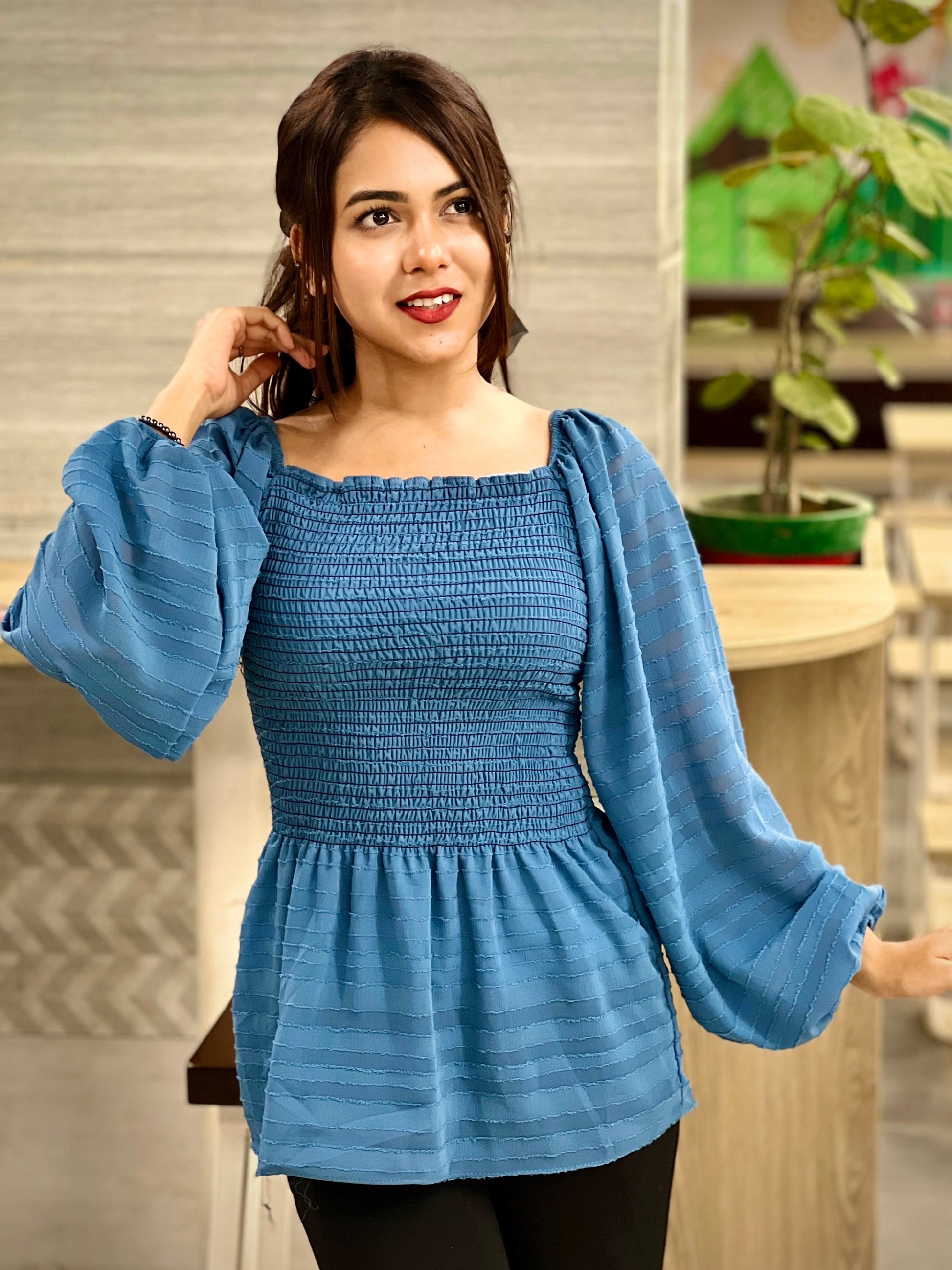 Short Smokey Tops || Blue Short Top || Ladies Short Tops