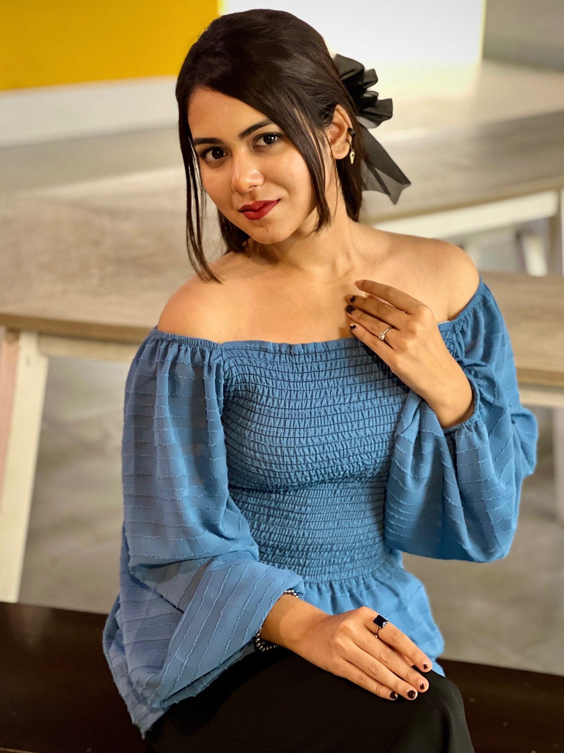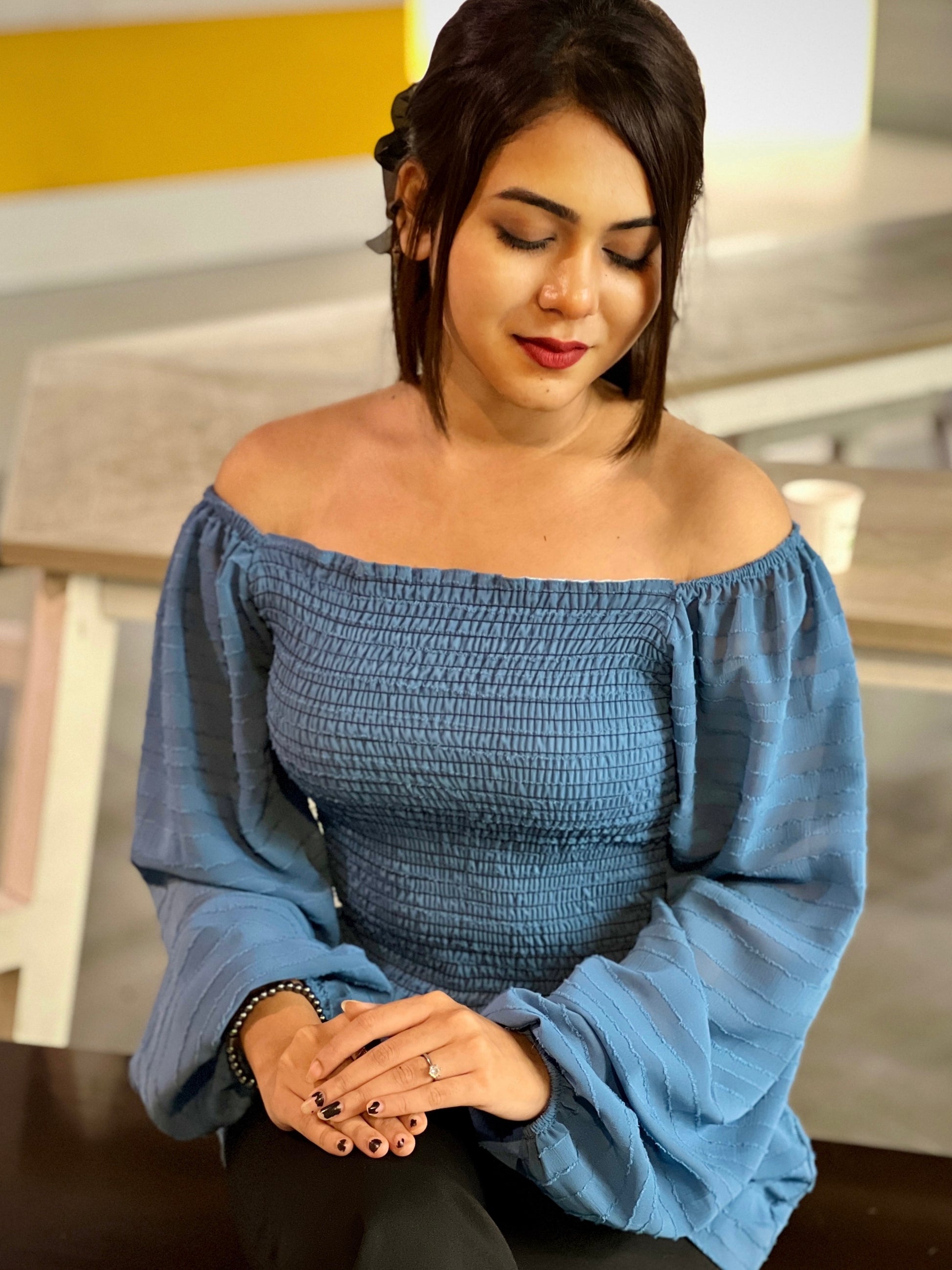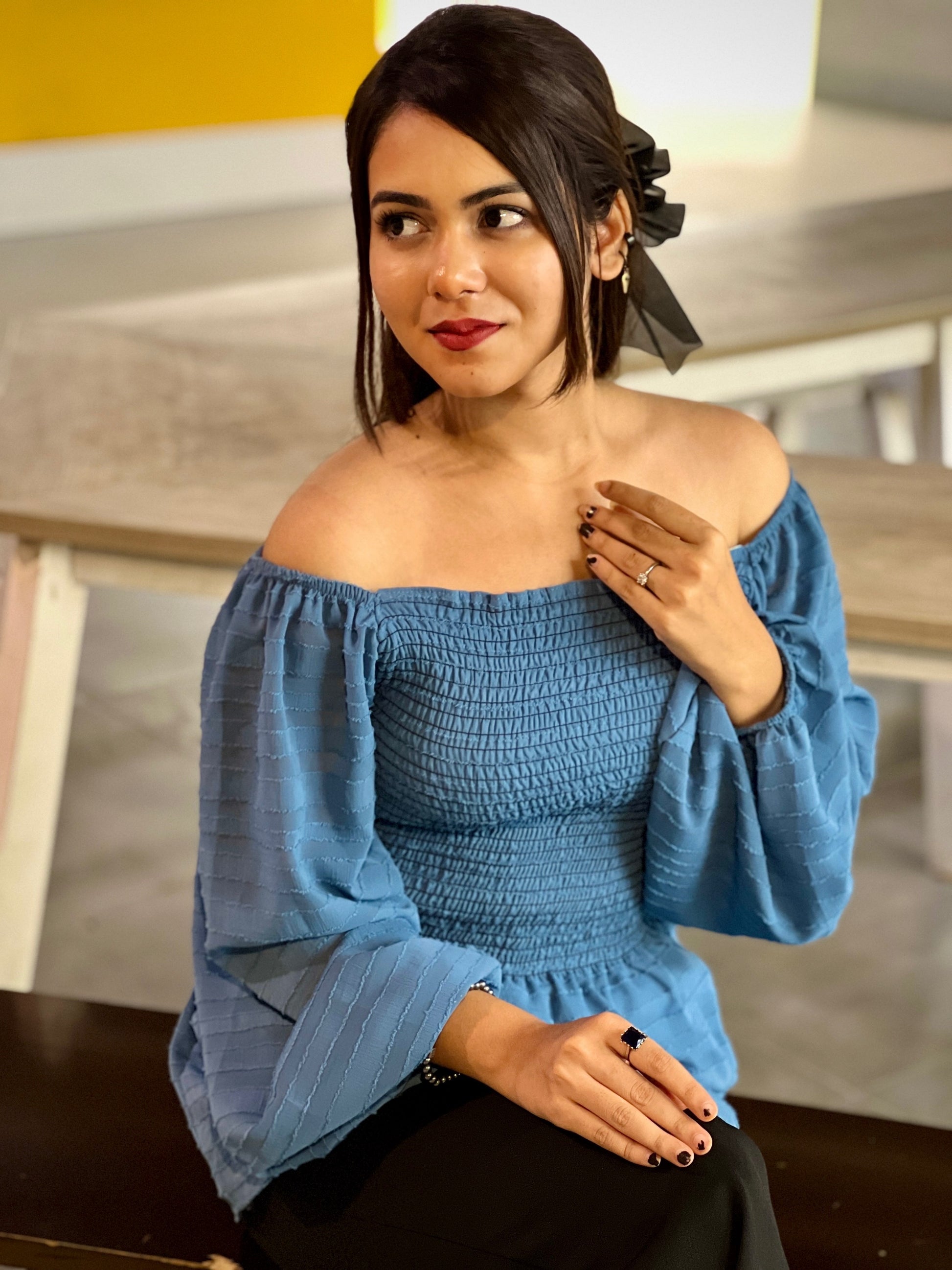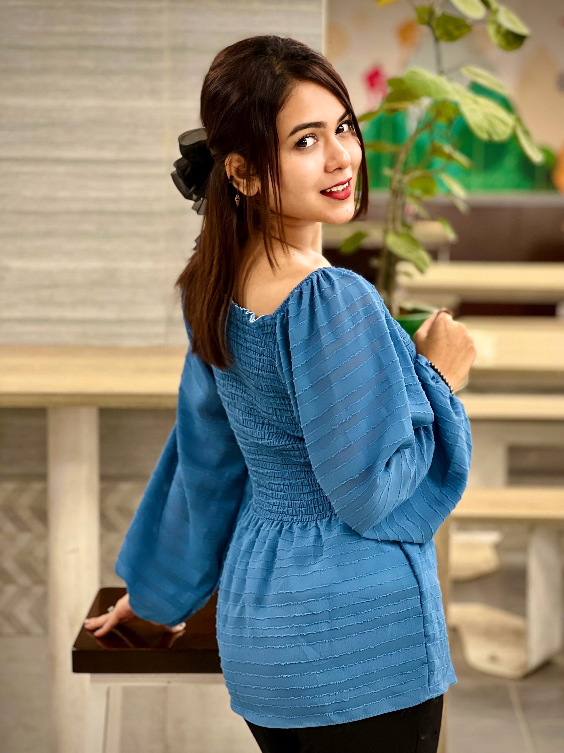 Short Smokey Tops || Blue Short Top || Ladies Short Tops