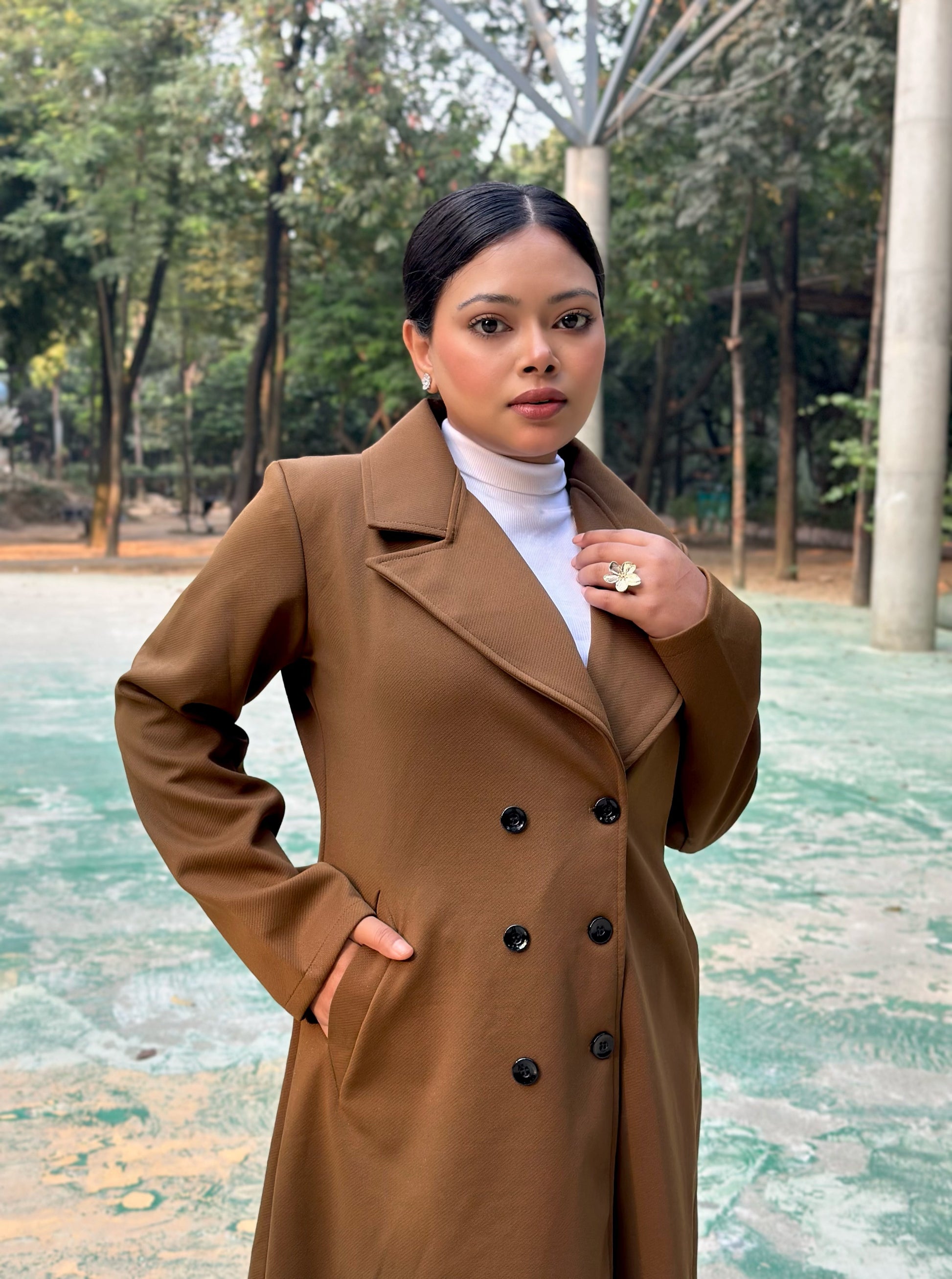 The Classy Long Overcoat – Elegant Winter & Formal Wear | Jacket || Caramel Brown
